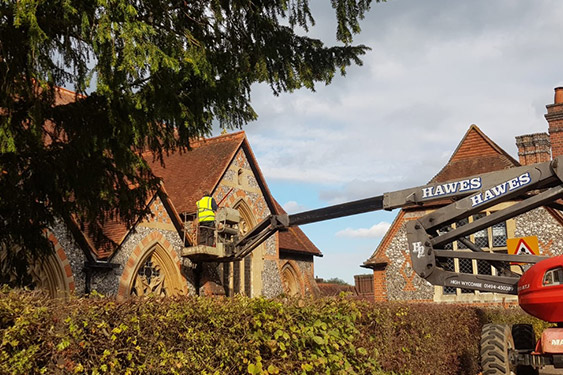 Our team used Mansafe roof access systems and cherry pickers to carry out full gutter clearance and debris removal.